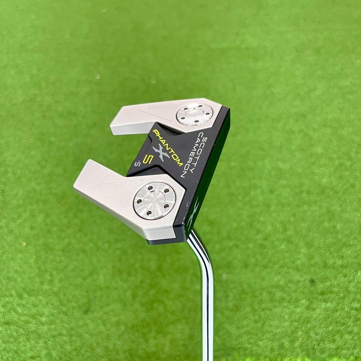 PUTTER SCOTTY CAMERON PHANTOM X 5.5 2020 ความยาวก้าน 34 นิ้ว การออกแบบของ Scotty สำหตำแหน่งจุดศูนย์เล็งที่เรียบง่าย เส้นด้านบนที่กว้าง และปีกที่เรียวลง มันเซ็ตตัวได้ดีมาก โดยเฉพาะอย่างยิ่งเมื่อใช้กับหน้าไม้อะลูมิเนียมแบบแข็งแบบใหม่” — Scotty Cameronรับพ